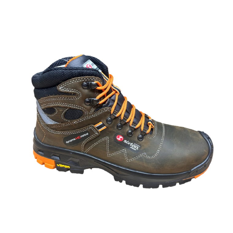 Modischer Sicherheitshalbstiefel mit VIBRAM Sohle, gefettetes Nubuk Leder Hydrotech, Air Circulation Innenfutter, durchtrittsichere Kevlar Einlage, Zehenschutzkappe aus Alu, PU/Vibram Laufsohle