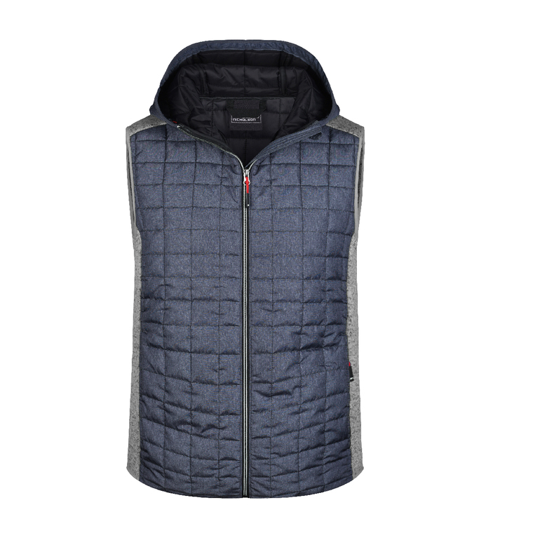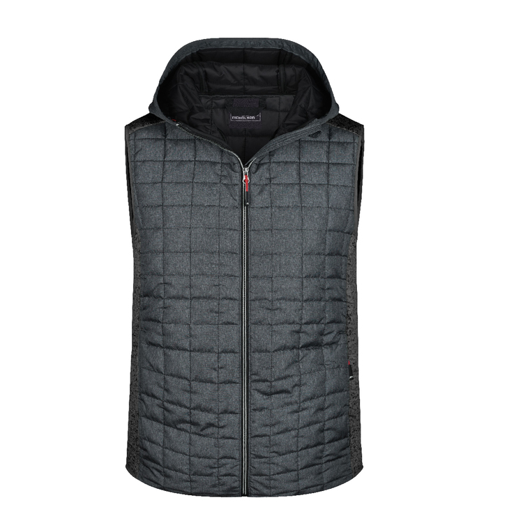 Weiches, wärmendes, pflegeleichtes Material in Melange-Optik. Vorder-, Rückenteil und Kapuze in gestepptem Karodesign. Material: 100 % Polyester, Qualität: 280 g/m²
