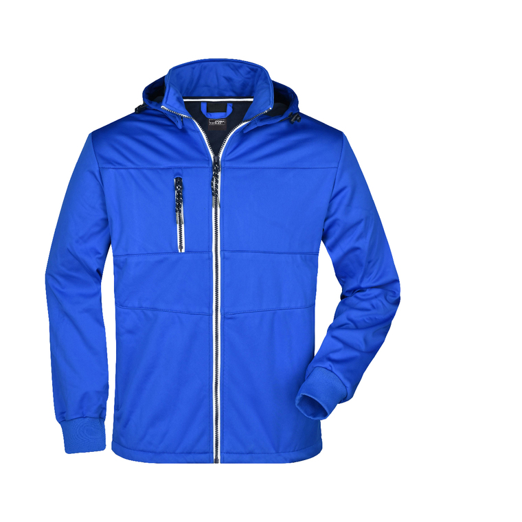 3-lagiges Funktionsmaterial mit TPU-Membran, Wind- und wasserdicht (5.000 mm Wassersäule), atmungsaktiv und wasserdampfdurchlässig, Nicht verschweißte Nähte, Stehkragen, abnehmbare Kapuze, 2 Seitentaschen und 1 Brusttasche mit Reißverschluss